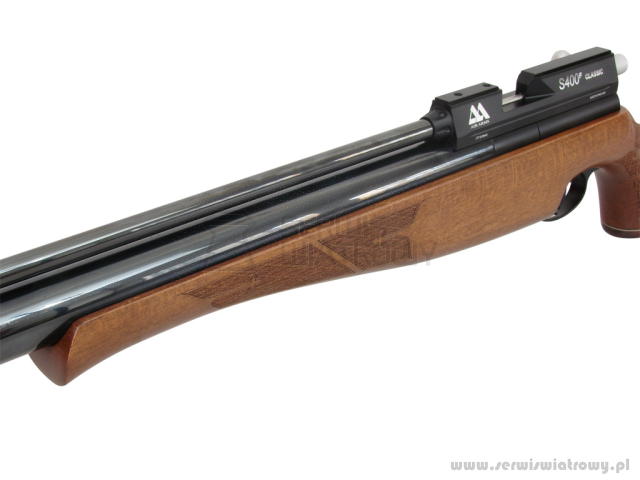 Wiatrówka AA S400 z gwintowaną lufą kaliber 4,5 mm, należąca do kategorii najbardziej zaawansowanych technologicznie karabinków pneumatycznych PCP (Pre-Charged Pneumatic). Wyprodukowana przez renomowaną angielską firmę AirArms.