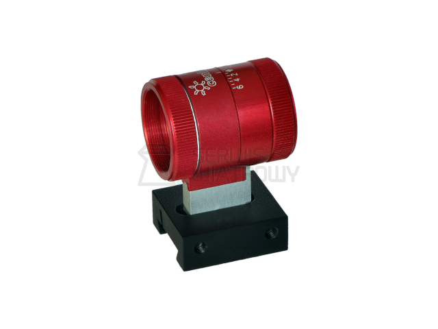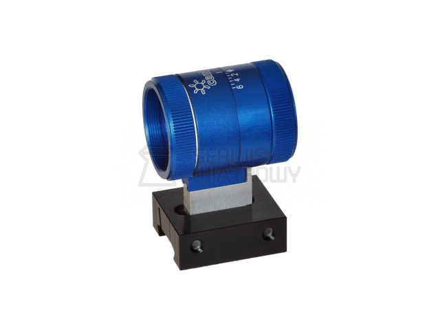 Muszka tunelowa ze zintegrowanym podwyższeniem o 8 mm pozwala na stałe uniesienie linii celowniczej względem szyny montażowej. Mechanizm zapewnia płynną i beznarzędziową regulację obrotu wokół własnej osi, co umożliwia idealne dopasowanie do postawy strzelca. Konstrukcja pozwala na montaż poprzecznych pinów do kontroli przechylenia, a naniesiona skala ułatwia precyzyjne oraz powtarzalne ustawienie konkretnego kąta.