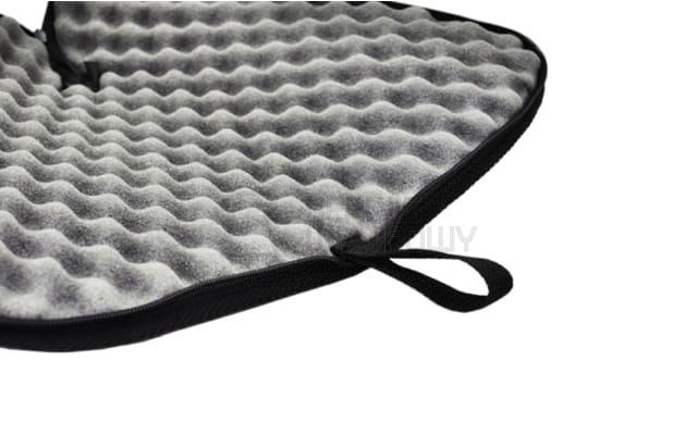 Pokrowiec na broń krótką wykonany z materiału CORDURA 600. Materiał ten charakteryzuje się wytrzymałością oraz wodoodpornością. Wewnątrz pokrowiec wyłożony został tłoczoną gąbką nylonową "zęby rekina". Pokrowiec jest zapinany na zamek błyskawiczny.
