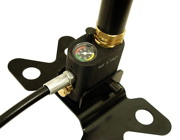 Bezpieczeństwo - urządzenie wyposażono w precyzyjny manometr z podziałką od 0 do 250 bar oraz zawór odpowietrzający pozwalający napełnić cylinder wiatrówki jak i bezpiecznie odłączyć napełniony kartusz od pompki. Należy każdorazowo luzować zawór ciśnieniowy przed odłączeniem pompki od kartusza. Nie wykonanie procedury luzowania może skutkować uszkodzeniem uszczelek. Stabilna podstawa pompki z możliwością regulacji ułatwia bezpieczne użytkowanie pompki podczas pompowania.