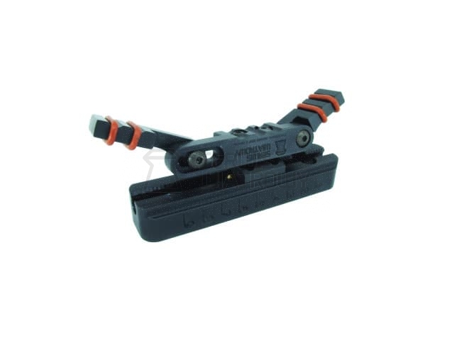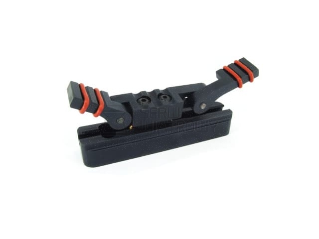 Gumowe obręcze na listkach przeciwdziałają przesuwaniu się stopki na ramieniu (w zestawie dodatkowo komplet czerwonych gumek antypoślizgowych) - stopka nie ślizga się, bardzo stabilnie trzyma się w dołku strzeleckim.